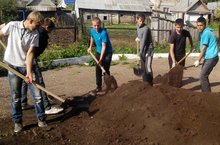 Студенты убирали, а также облагораживали территорию вокруг здания и мастерских.