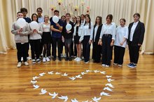 Студенты изготовили белый голубей в память о всех невинных жертвах.