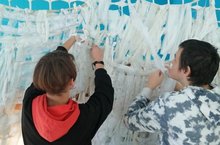 В рамках декады инвалидов дети с инвалидностью и ОВЗ участвовали в нарезке и плетении маскировочных сетей (добровольческая акция "Коробка добра").