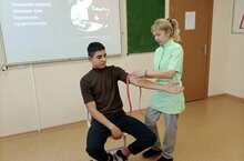 С 17 по 18 ноября медсестра техникума Газизова Гузелия Тагировна совместно с преподавателем ОБЖ Григорьевым Анатолием Александровичем провели занятия по теме «Оказание первой медицинской помощи при кровотечениях», включающее практическую часть – наложение повязок.