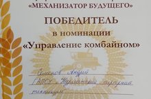Поздравляем Андрея и его руководителя, Набиуллина Мансура Марсовича с победой в номинации «Управление комбайном»!