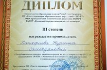 Мы с превеликим удовольствием поздравляем преподавателя спецдисциплин Ханяфиеву Нурсину Салихзяновну с прекрасным результатом: по результатам двух туров - 3 место в конкурсе!