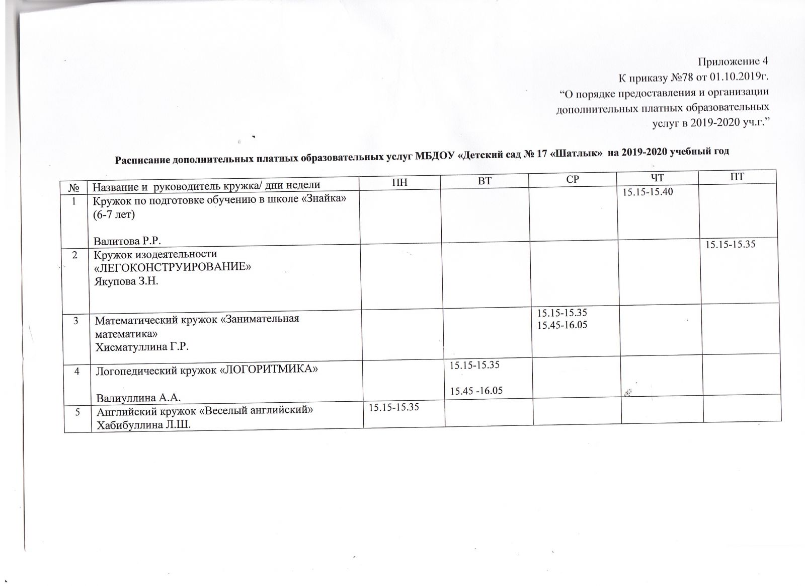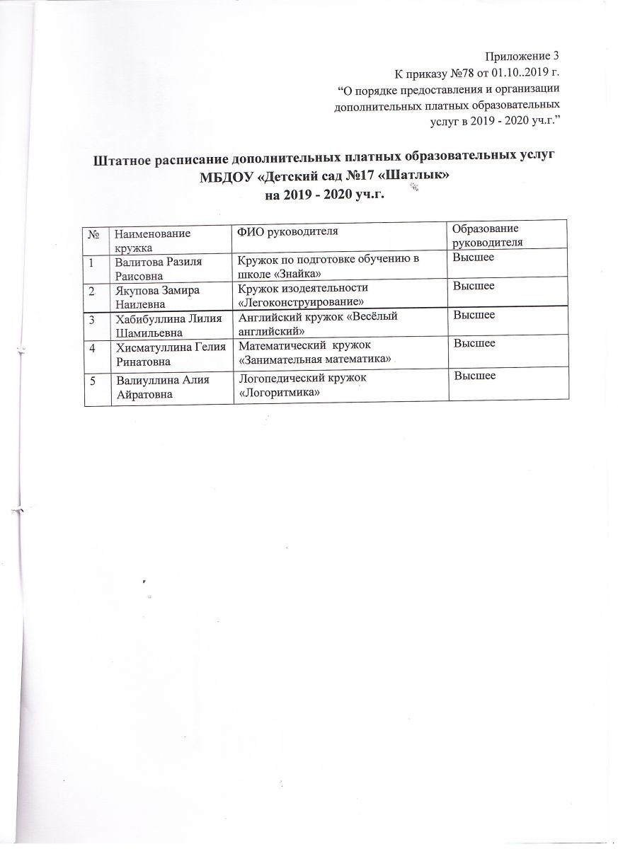Штатное расписание дополнительныхплатных образовательных услуг.