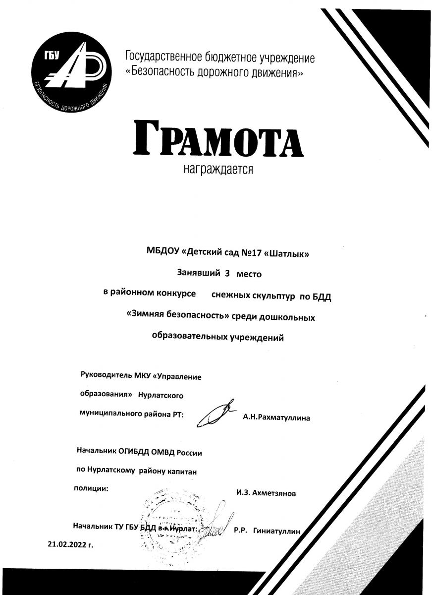 Дипломы ГБУ ""Безопасность дорожного движения"/Юл хәрәкәте иминлеге"ДБУ дипломнары