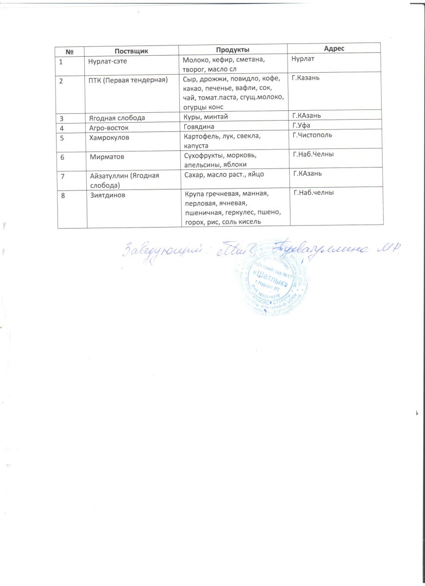 Список поставщиков продуктов питания на 1 полугодие 2024г./2024 елның 1 яртыеллыгына азык-төлек тәэмин итүчеләр исемлеге