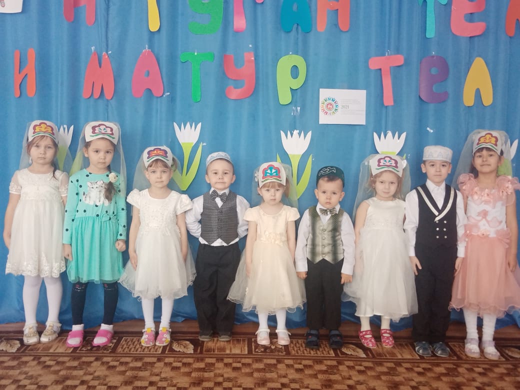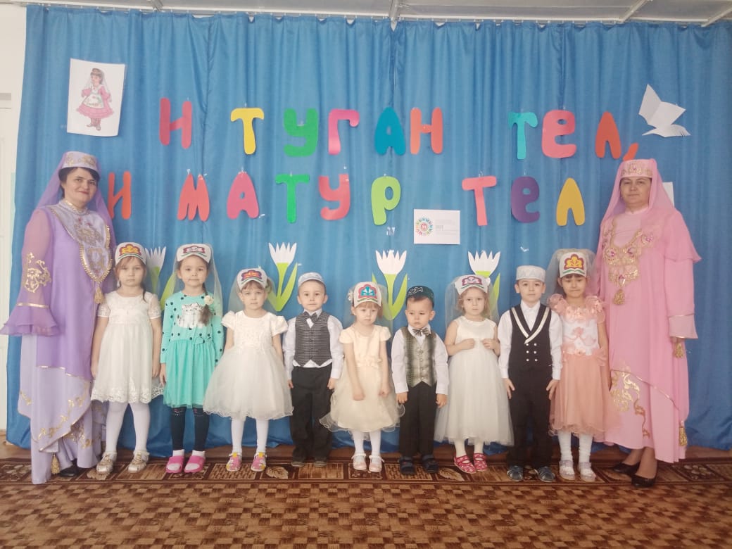 Балаларның туган як, татар теле, татар халкының көнкүреше турында белемнәрен ныгыту, милләтебез, туган телебез белән горурлану хисләре, әдәплелек тәрбияләү максатыннан бакчабызда Халыкара туган тел көненә багышланган атналык уздырылды.Шушы чарага әзерлек максатыннан балалар белән туган телгә карата шигырьләр, биюләр, җырлар өйрәндек./ В целях воспитания любви и гордости к родному языку,к родному краю, закрепления знаний о национальных татарских традициях в нашем саду была проведена неделя Международного дня родного языка. В связи с этими событиями мы с детьми учили стихи на родном языке, разучивали национальные татарские игры,песни,танцы.