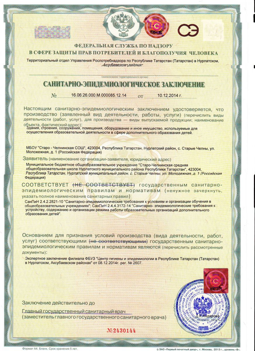 Санитарно-эпидемиологическое заключение (доп. образование)