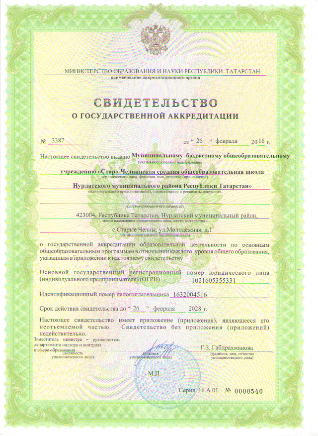Муниципальное бюджетное общеобразовательное учреждение "Старо-Челнинская средняя общеобразовательная школа Нурлатского муниципального района Республики Татарстан"/ "Татарстан Республикасы Нурлат муниципаль районы Иске Чаллы урта гомуми белем мәктәбе" муниципаль бюджет гомуми белем учреждениесе