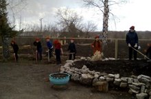 Юнармейцы очищают территорию школы от мусора, готовятся к празднованию Великой Победы