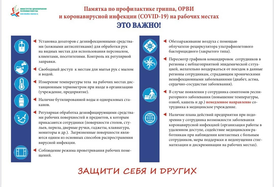 Памятка по профилактике гриппа, ОРВИ и коронавирусной инфекции (COVID-19) на рабочих местах