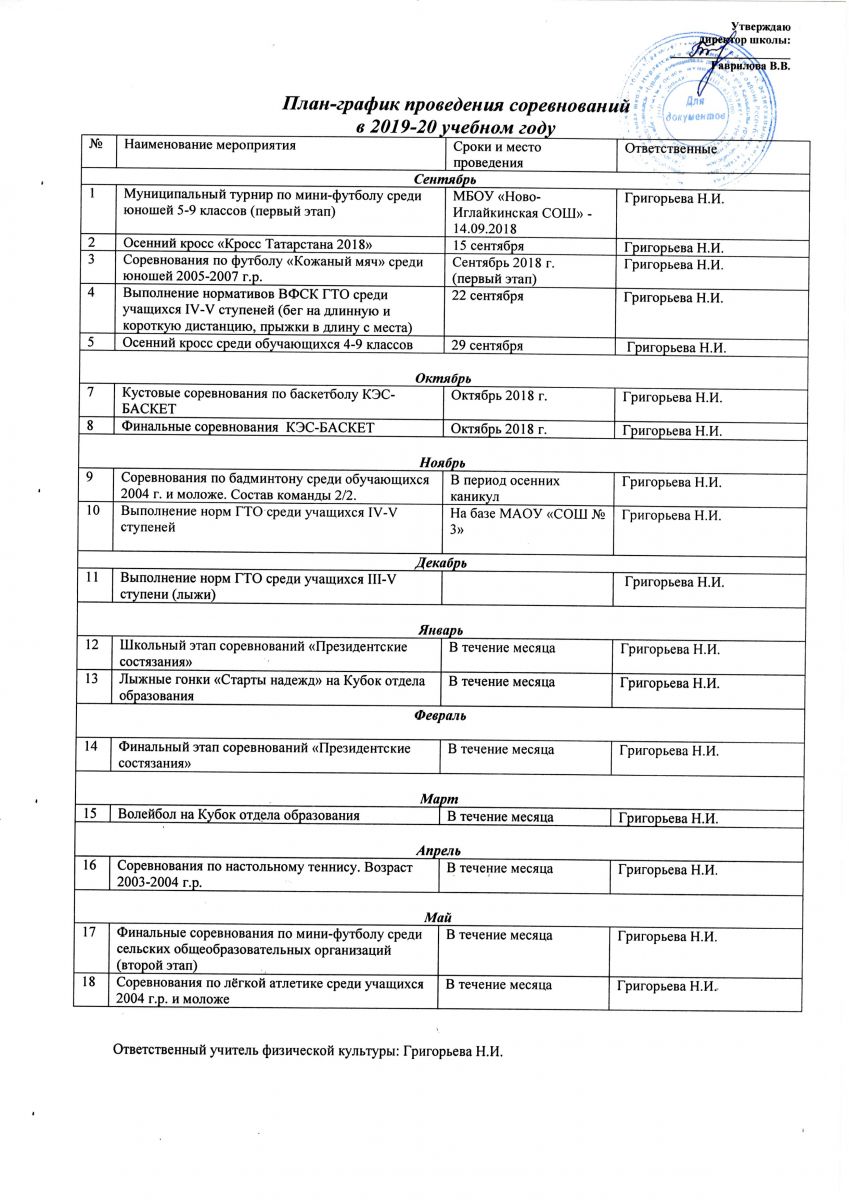 План мероприятий по ВФСК ГТО в 2019-2020 учебном году