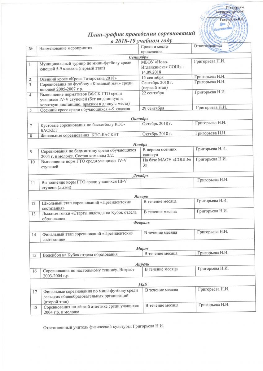 План мероприятий по ВФСК ГТО в 2018-2019 учебном году