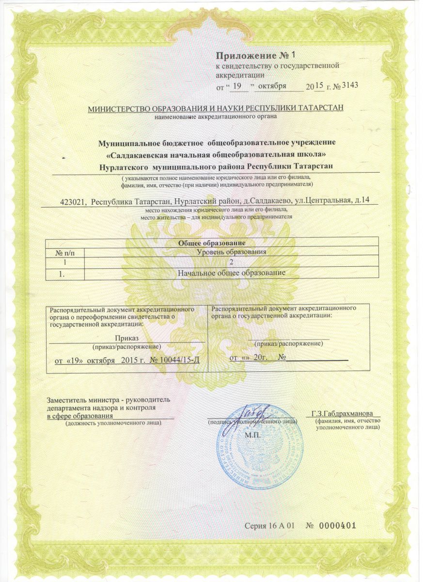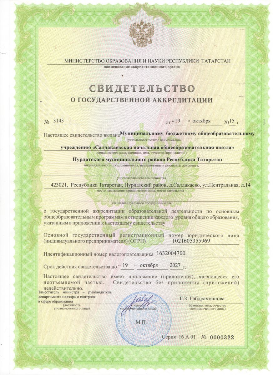 МБОУ «Салдакаевская начальная общеобразовательная школа" Нурлатского муниципального района Республики Татарстан (реорганизация, 2020г.)