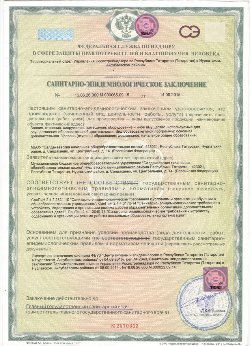 МБОУ «Салдакаевская начальная общеобразовательная школа" Нурлатского муниципального района Республики Татарстан (реорганизация, 2020г.)