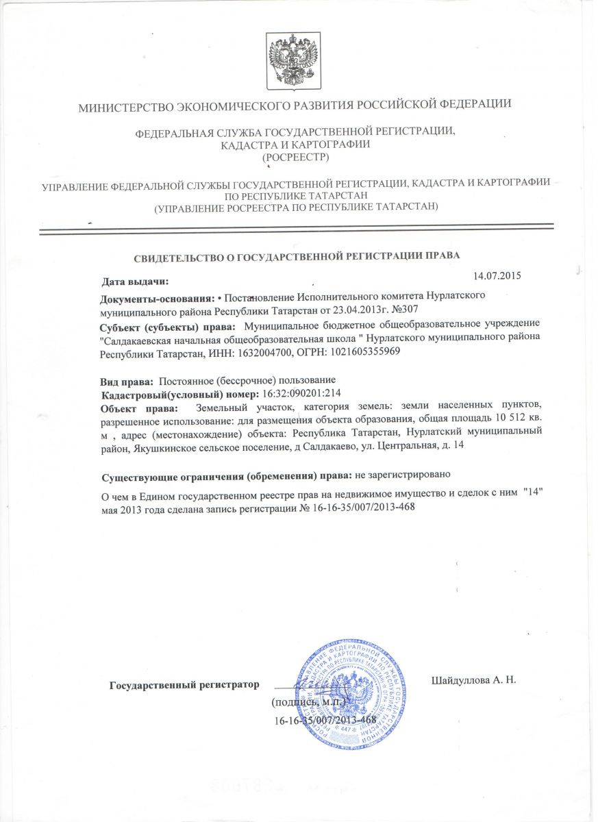 МБОУ «Салдакаевская начальная общеобразовательная школа" Нурлатского муниципального района Республики Татарстан (реорганизация, 2020г.)