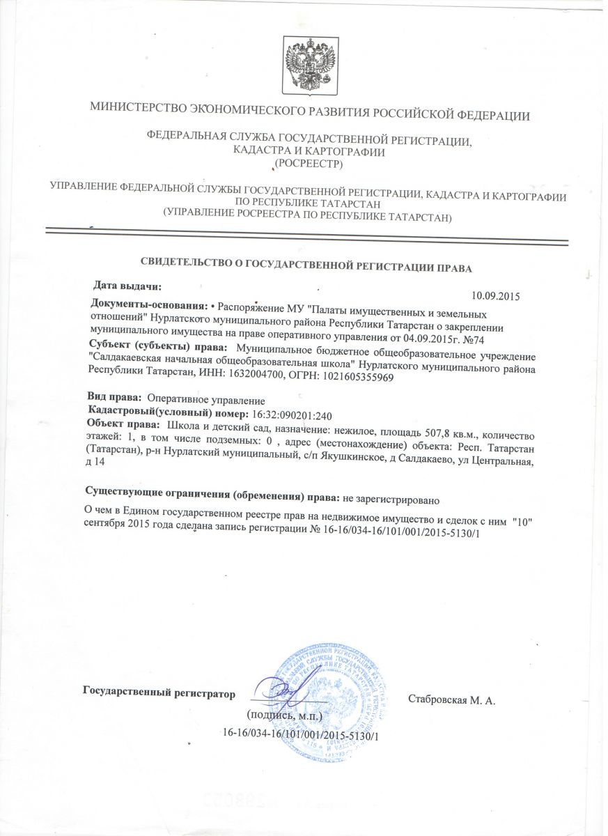 МБОУ «Салдакаевская начальная общеобразовательная школа" Нурлатского муниципального района Республики Татарстан (реорганизация, 2020г.)