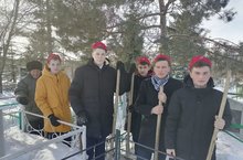 В преддверии Дня памяти о воинах - интернационалистов юнармейцы нашей школы очистили от снега могилу выпускника нашей школы Алмаза Фахрутдинова, погибшего в Чечне