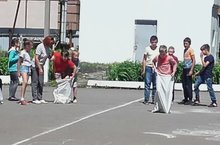 16 июня в пришкольном лагере "Солнышко" состоялся мини -Сабантуй. Дети с удовольствием участвовали в конкурсах: скачки на лошадях, бег с ложкой, бег в мешках и бой мешками.