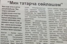 В рамках Республиканского конкурса-акции «Мин татарча сөйләшәм!» («Я говорю по–татарски!») учитель родного языка Набиуллина Ф.М. в районной газете опубликовала статью.