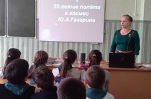 В рамках Дня космонавтики с учениками 5-х классов была проведена беседа "Космос. Планеты.Звёзды", сопровождавшаяся показом презентации. -