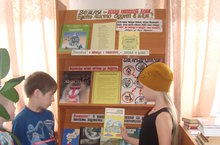 В школьной библиотеке работает выставка к Году экологии. Ребята приходят в библиотеку знакомиться с выставкой.
