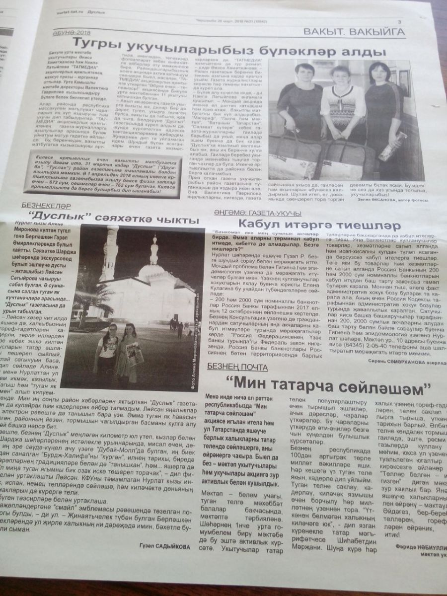 Мин татарча сөйләшәм акциясе. Школьная газета. Мәктәп гәҗите.