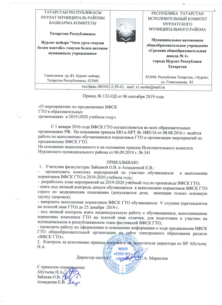Приказ о мероприятиях по продвижению ВСФК ГТО