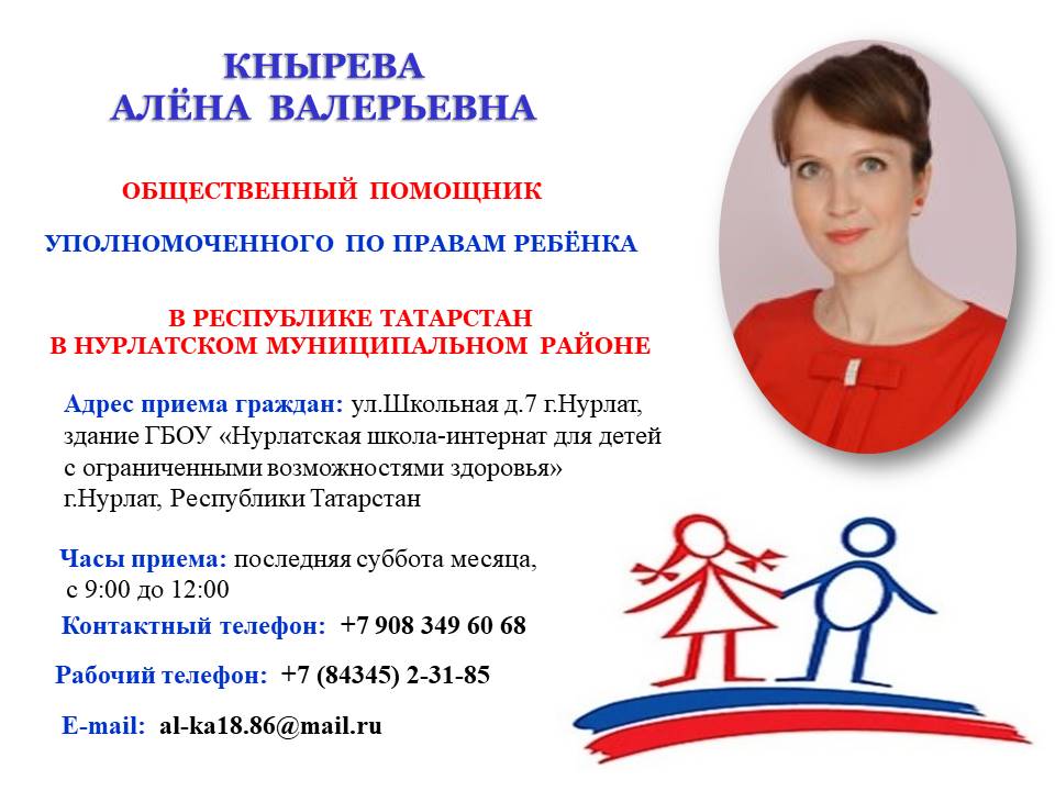 ОБЩЕСТВЕННЫЙ ПОМОЩНИК УПОЛНОМОЧЕННОГО ПО ПРАВАМ РЕБЕНКА В РТ В НУРЛАТСКОМ МУНИЦИПАЛЬНОМ РАЙОНЕ