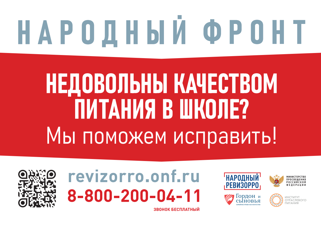 Опубликовано: 02.03.2023С 1 сентября 2020 года в России запущена совместная горячая линия Общероссийской общественной организации «Народный фронт «За Россию» и Минпросвещения России. С момента начала работы горячей линии было получено более 17 000 обращений, из которых сформированы более 6 500 жалоб. Поступившие жалобы рассматриваются в том числе на оперативных штабах Министерства просвещения Российской Федерации по организации горячего питания. Минпросвещения России информирует, что в связи с технической необходимостью изменился номер телефона для приема сигналов по школьному питанию.