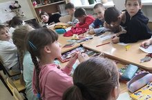 В рамках Всероссийского проекта "Классные встречи" с воспитанниками лагеря сегодня прошла встреча с руководителем "Изо-студии" Яковлевой Еленой Леонидовной. Ребята с интересом слушали Елену Леонидовна, которая рассказала об изобразительному искусстве, провела викторину о жанрах искусства, разыграл подарочные сертификаты по посещение кружка "Изо-студии". А также провела для детей мастер-класс, где ребята нарисовали натюрморт "Пирожное".Лагерьда тәрбияләнүчеләр белән "класс очрашулары" бөтенроссия проекты кысаларында бүген "Изо-студия" җитәкчесе Яковлева Елена Леонидовна белән очрашу узды. Балалар кызыксынып Елена Леонидовна тыңладылар, ул сәнгать жанрлары турында викторина уздырды, "Изо-студия"түгәрәгенә бару буенча бүләк сертификатлары уйнатты. Шулай ук балалар өчен мастер-класс үткәрде, анда укучылар "Пирожное"натюрмортын ясадылар.