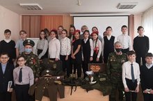 Учащиеся 5А класса в рамках Всероссийской акции "Армейский чемоданчик" провели классный час "Есть такая профессия - Родину защищать". Ребята организовали выставку "Армейский чемоданчик", где рассказывали об истории судьбы защитника Отечества и продемонстрировали предметы его быта, связанного со срочной службой, которые размещены в чемодане.
