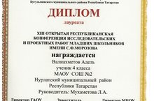 Учащиеся 4А класса успешно выступили в Республиканской конференции исследовательских и проектных работ младших школьников им. С. Ф. Морозова. После отборочного тура Валиахметов Адель выступил с защитой проекта в секции "Зоокультура и ветеринария". Поздравляем ребят и желаем им и руководителю Мухаметовой Ларисе Анатольевне дальнейших успехов и побед!