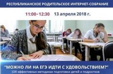 13 апреля в 11.00-12.30 состоится республиканское родительское интернет-собрание на тему "Можно ли на ЕГЭ идти с удовольствием?". Онлайн-трансляцию можно посмотреть на сайте киу.рф и задать свои вопросы по адресу roditelirt@mail.ru.