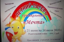 Летний пришкольный лагерь с дневным пребыванием детей "Мечта" 17.04.2018