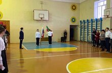 Традиционно неделя начинается с линейки, гимна и внесения флагов.