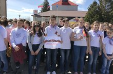 Сегодня на центральной площади города прошла всероссийская акция "Рекорд Победы", к которой присоединились и учащиеся нашей школы. Бүген үзәк мәйданда шәһәрнең мәктәп укучылары бөтенроссия акциясендә катнашты Рекорд Җиңү.