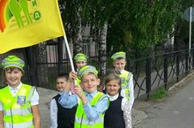 Ребята из отряда ЮИД провели с первоклассниками беседу о безопасности на дорогах и показали как правильно переходить дорогу.
