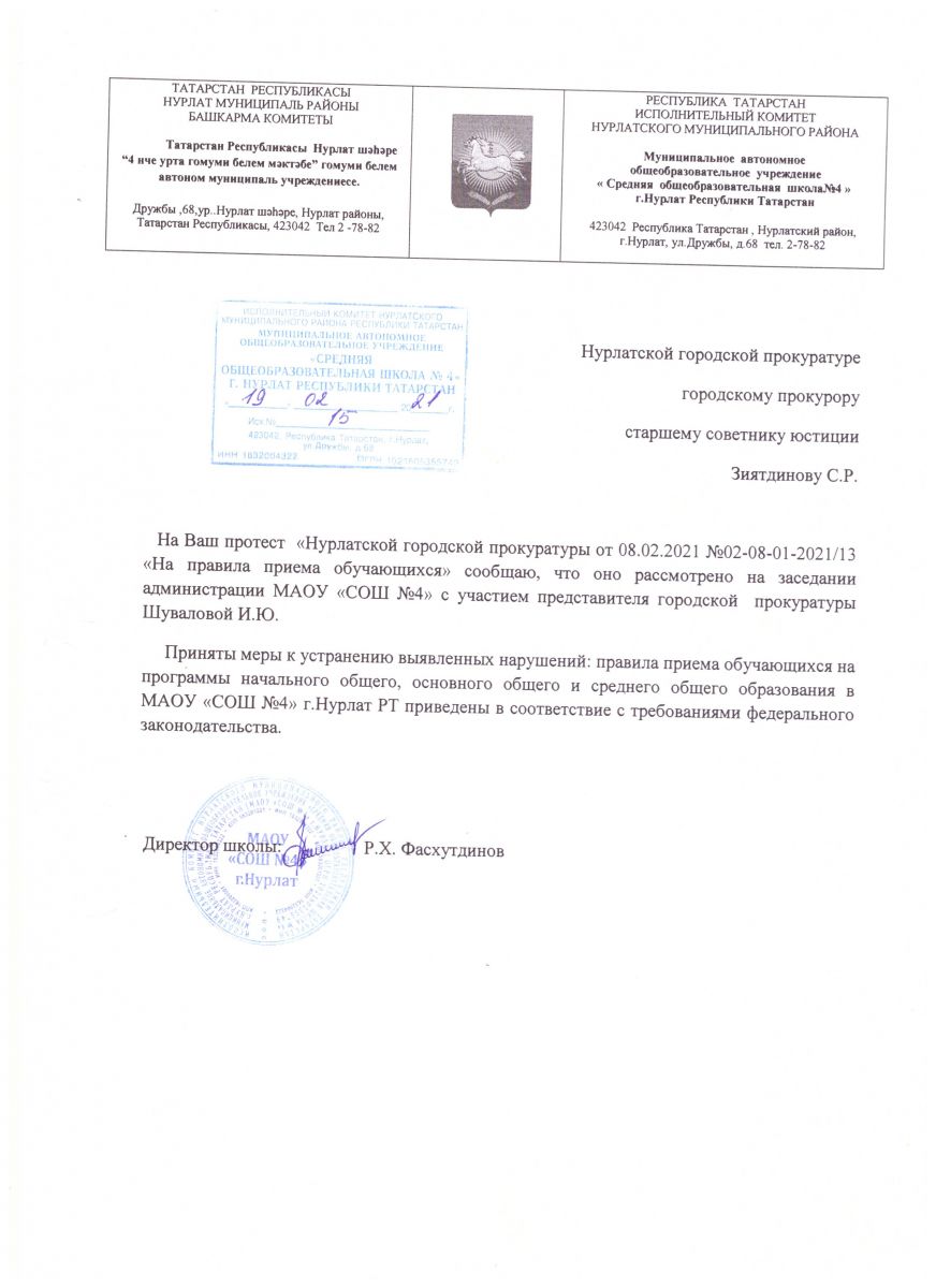 Протест Нурлатской городской прокуратуры от 08.02.2021 г. № 02-08-01-2021/13
