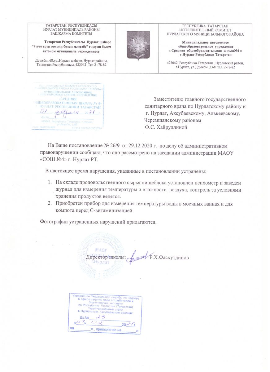 Ответ на Постановление №26/9 от 29.12.2020 г. по делу об административном правонарушении