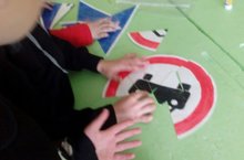 А еще были занятия по ПДД, ребята вспоминали знаки, собирали их как пазл. -
