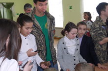 13-го февраля к нам в школу с доброй миссией прибыла из г.Казань военно-патриотическая организация "Легион" .Встреча началась с приветственной речи Александра Александрова , руководителя отряда, который рассказал собравшимся о целях, задачах и деятельности «Легиона». Члены организации поделились со школьниками своими ощущениями и впечатлениями, а также рассказали о том, что каждого из них привело сюда. «Я начала ездить в экспедиции еще школьницей, - говорит самая молодая участница, студентка первого курса факультета управления Наталья Кондратьева. – С 7-го класса занималась агитационной работой, затем вступила в спортивно-патриотическую организацию нашей школы, по окончанию оттуда перешла в «Легион». Для меня было огромным счастьем, когда был найден боец с медальоном. Эти эмоции просто невозможно передать словами!».Ребятам были показаны видеоролики, повествующие о трудовых буднях отряда.Ребята сыпали вопросами,фотографировались с членами организации и явно не остались равнодушными к деятельности организации.