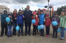 Члены отряда "Экстрим" республиканского антинаркотического проекта СМС-дети приняли участие в общегородской зарядке .