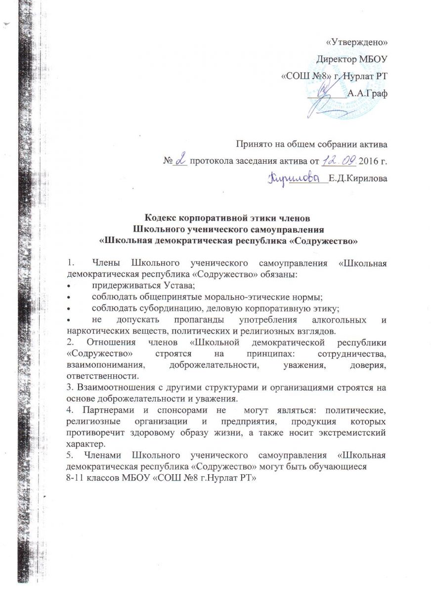 Положение о школьном ученическом самоуправлении "Школьная Демократическая Республика "Содружество"