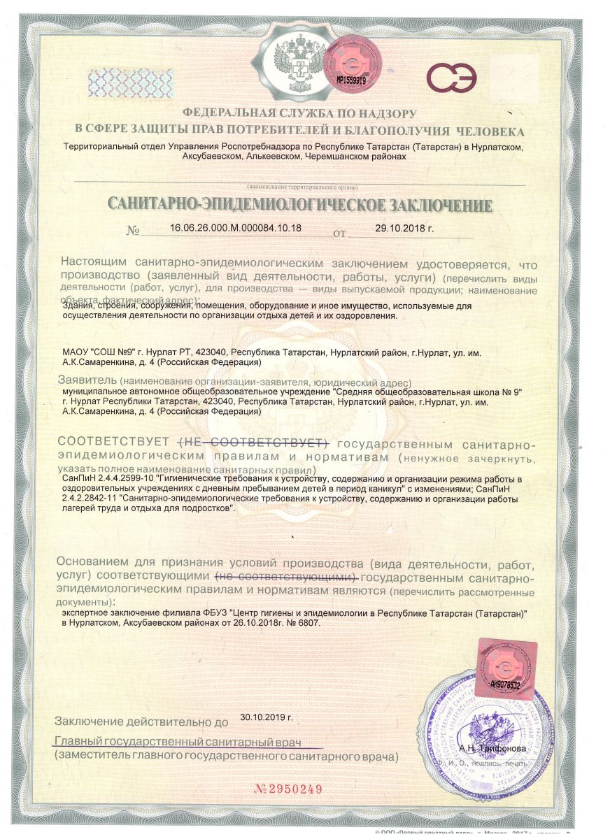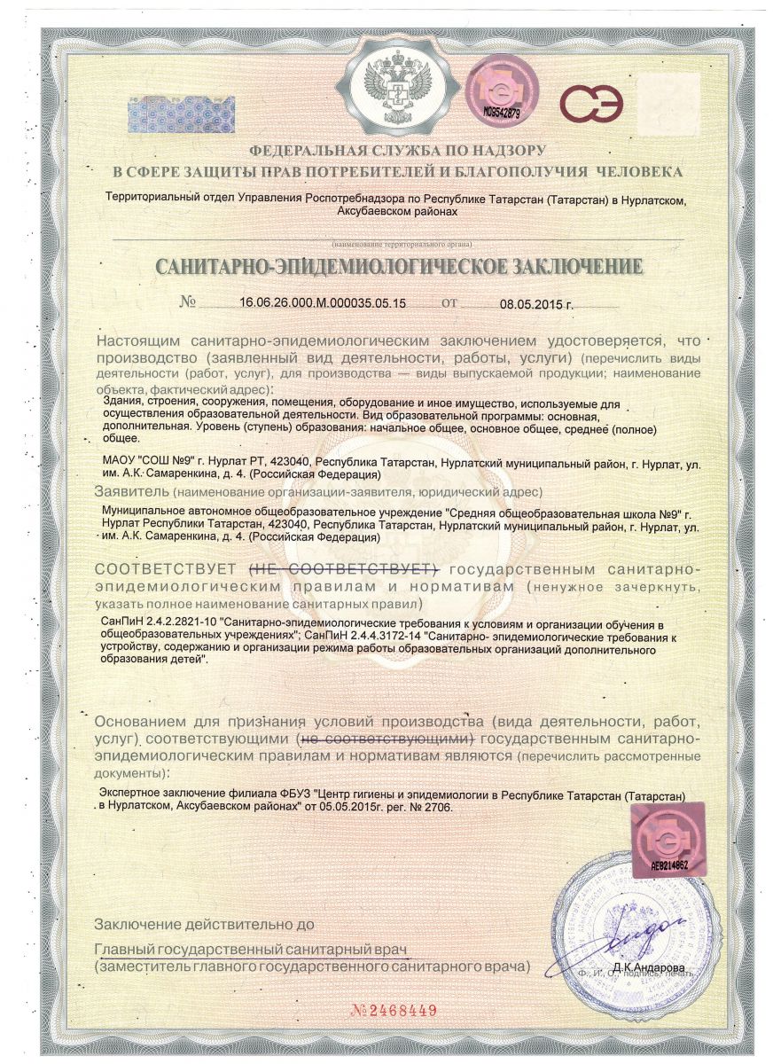 Санитарно-эпидемиологическое заключение (основная и дополнтельная образовательная программа)
