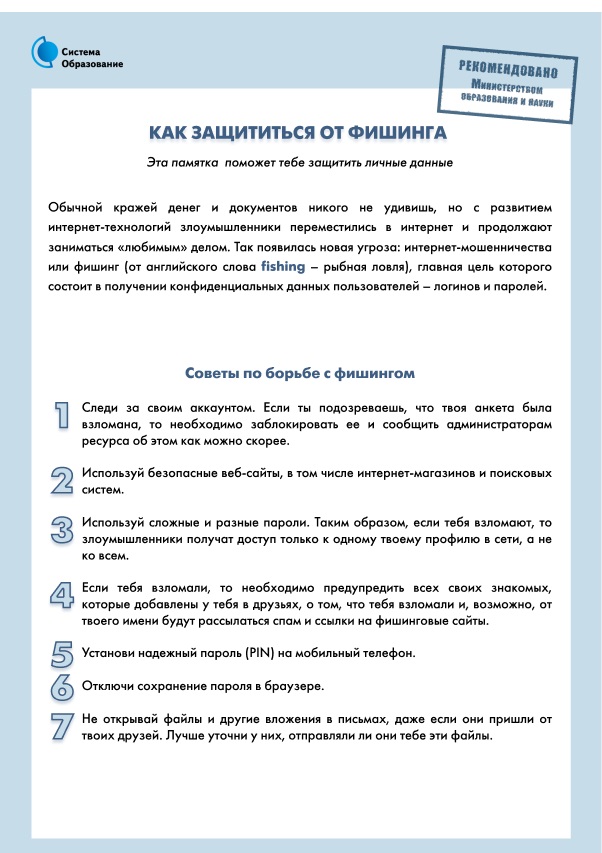 Памятки по безопасности в интернете