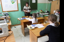 12 марта Тазеева Э.Ш. учитель трудового обучения провела открытый урок в 6 а классе на тему: "Носовой платок".