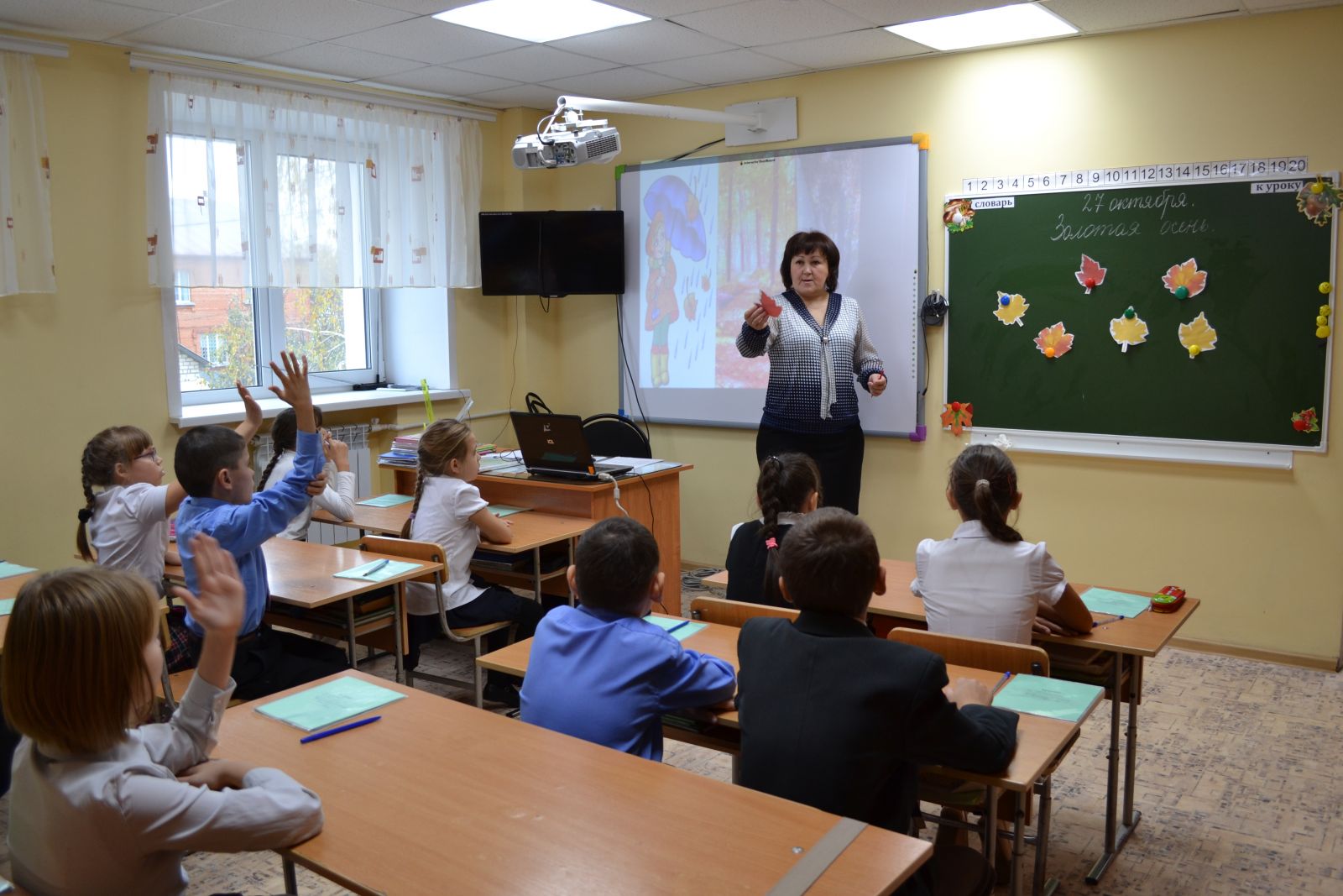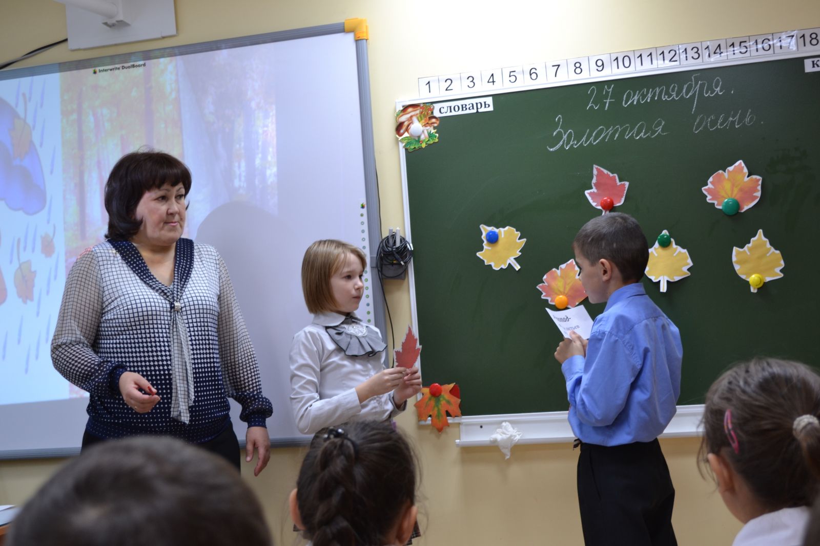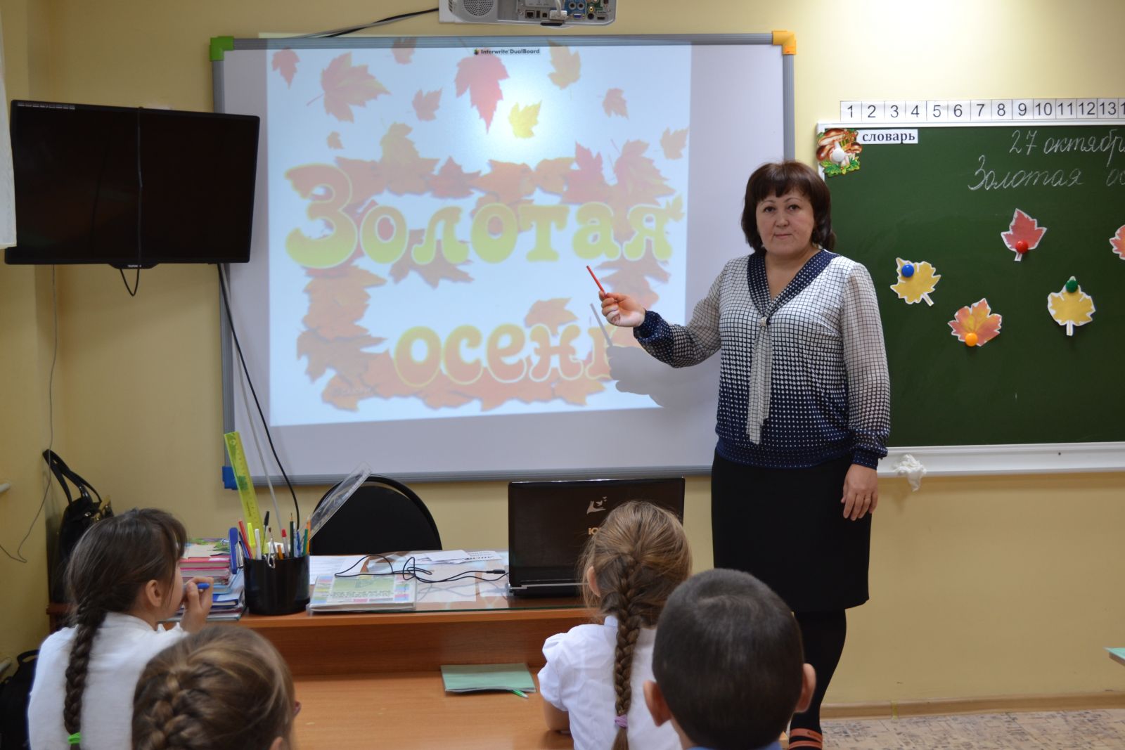 Бүген башлангыч сыйныф укытучысы Усманова Г.Н. 4нче а сыйныфында сөйләм телен үстерү предметыннан "Алтын көз" темасына ачык дәрес үткәрде.