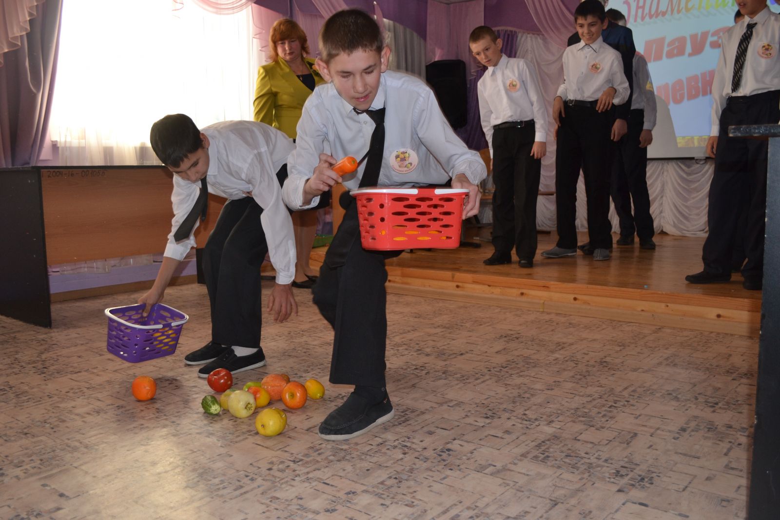 Бүген мәктәбебезнең авыл хуҗалыгы эшләре төркемендә шөгыльләнүче укучылар укытучылары Соколова Л.М. җитәкчелегендә, хезмәткә өйрәтү атналыгын төгәлләп, иптәшләре игътибарына "Уңыш бәйрәме" сыйныфтан тыш проектын тәкъдим иттеләр: "Яшелчәләр кәрзине" һәм "Мул җиләк-җимеш" командаларына бүленеп, авыл хуҗалыгы эшләре өлкәсендә белем һәм күнекмәләрен күрсәттеләр. фото фото фото