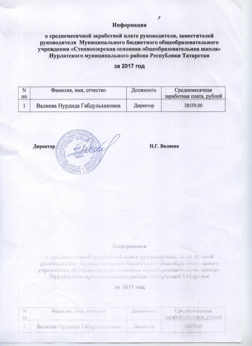 Информация о среднемесячной заработной плате руководителя МБОУ "Степноозёрская ООШ" / "Бикүле төп гомуми белем мәктәбе" җитәкчесенең уртача айлык эш хакы турында мәгълүмат