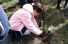 Школьное лесничество и представители Лесхоза высадили на пришкольной территории саженцы елей.